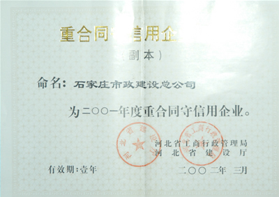2001年重合同守信譽單位